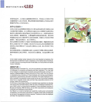 Beijing Motivation Consultant Co., Ltd. aims at protecting and exploiting motivation of employees of companies and factories and other institutions. The main staff of our company is experienced consultants and psychotherapists working in Institute of Mental Health of Peking University for many years. And we possess a consultant group consisting of psychologists, psychiatrists, psychometrics and other consultants.