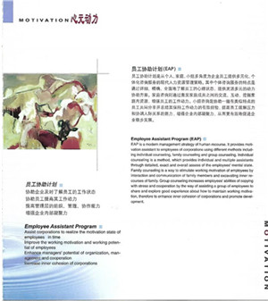On the basic of psychology theories and abundant case experience we develop and explore the motivation theory under the idea of Employee Assistant Program (EAP),which is comprehensive applied in many developed countries in Europe and America. With the theory, we can offer humanism and individual consult service to corporations and employees.